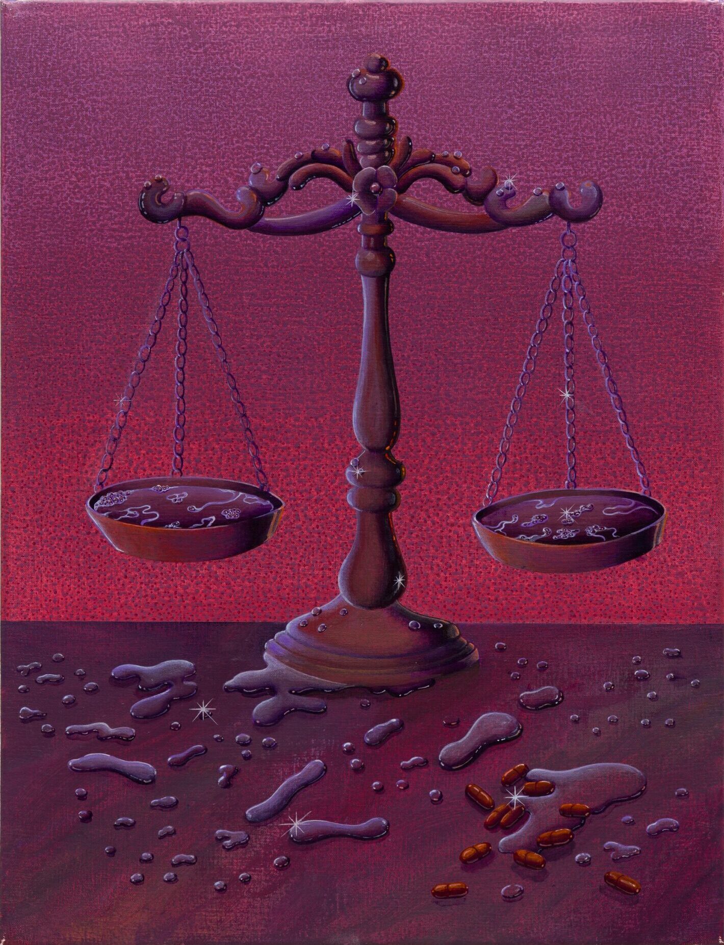 조니 네그론(b. 1985)은 강렬한 색채와 풍부한 상징성을 통해 독특한 미장센을 구현한다. 동시대적 미학과 신화적 요소를 결합한 그의 작업은 미술사, 고대 문명, 전통 문학, 오컬트 철학, 대중문화에 이르는 방대한 시각적·서사적 참조를 활용하며, 이를 상징적 영역과 현실 사이 어딘가에 존재하는 차원으로 재구성함으로써 암시와 은유, 사회적·정치적 논평이 교차하는 장면을 만든다. 그의 캔버스에는 시간이 멈춘 듯한 인물과 사물이 등장하며, 한 장면 속에 고요히 응축된 서사는 작품의 주체와 이를 바라보는 관객 모두에게 성찰의 기회를 제공한다. 푸에르토리코 카롤리나스에서 태어난 네그론은 미술을 독학했으며, 현재 미국 로스앤젤레스를 기반으로 활동하고 있다.