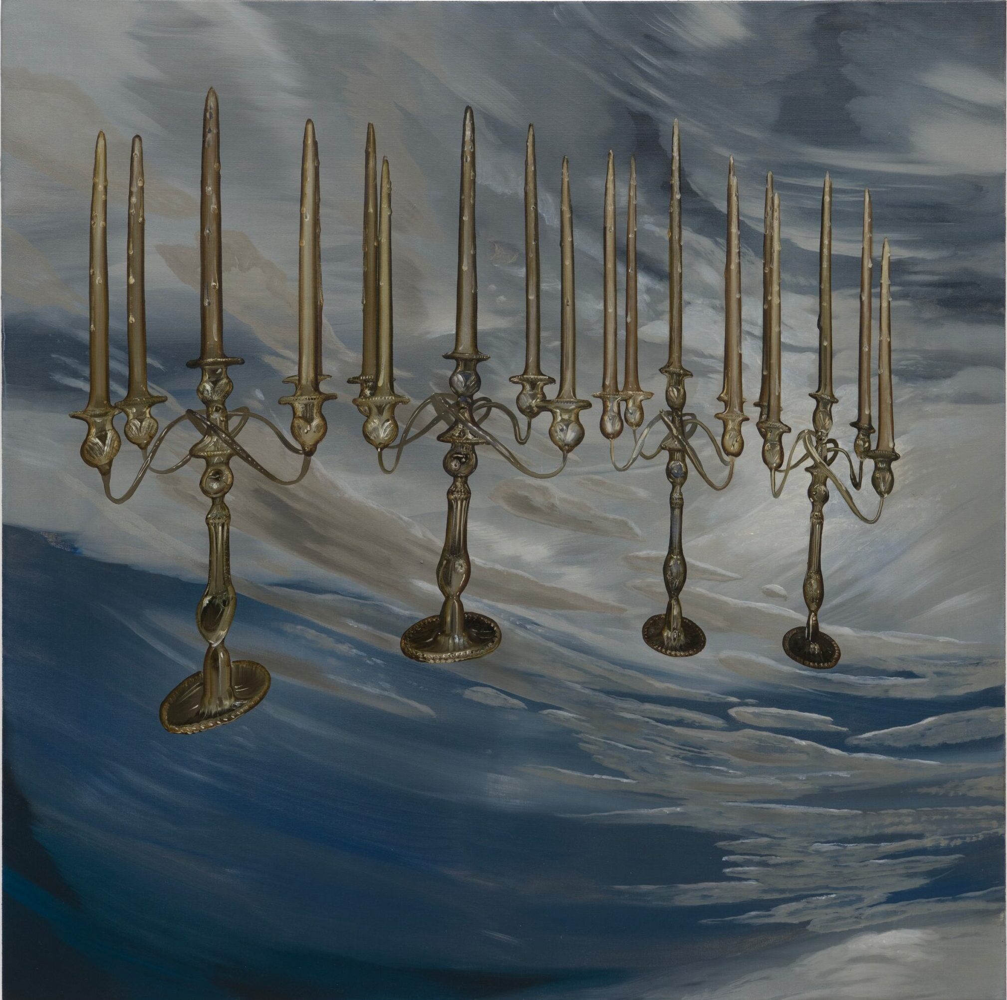미시간을 기반으로 활동하는 작가 레이 클라인(b. 1995)의 화면은 예측할 수 없는 서사 속에서 일상적인 오브제와 낯선 맥락을 결합한다. 작가는 대상을 기존의 시간적, 공간적 맥락에서 분리해 무한한 색과 형태의 평면 위에 배치하며, 이로써 통제력이 사라지는 순간을 포착하고 극적인 장면을 연출한다. 이러한 장면들은 장난스러움과 임박한 재앙 사이의 미묘한 긴장감을 담고 있다. 반짝이는 샹들리에와 검을 연상시키는 촛대부터 친숙하면서도 환상적인 생명체까지 그녀가 그려내는 이미지는 미지의 야생과 조화를 이루려는 인류의 오랜 시도를 형상화한다.