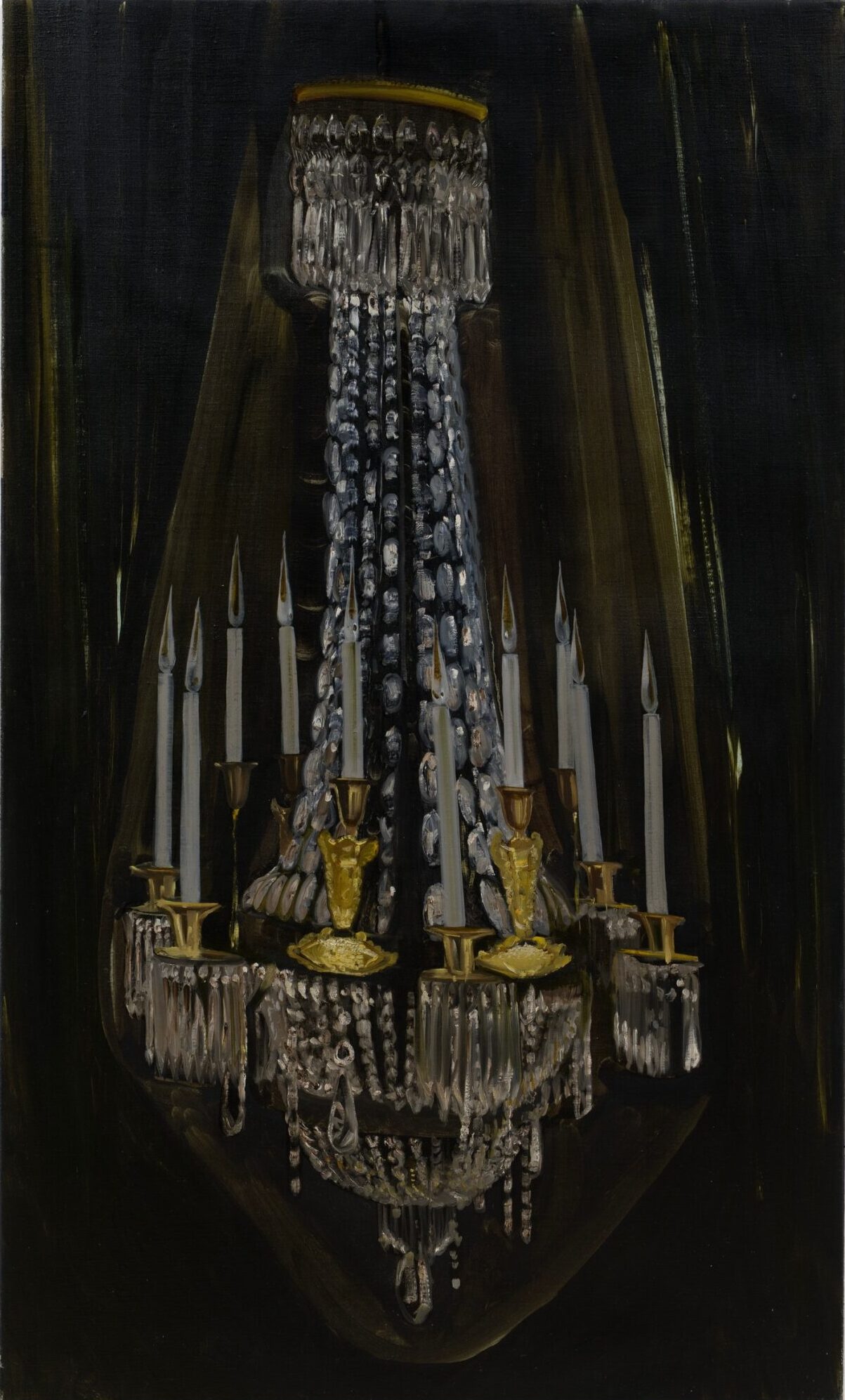 Based in Michigan, Rae Klein (b. 1995) concentrates the everyday with the uncanny, distilling her subjects from their native time and space, and superimposing them on endless planes of color and form. Her work probes the moment control slips away, rendering uncanny, theatrical scenes that sit between whimsy and imminent calamity. From glittering chandeliers and sword-like candelabra to creatures familiar and fantastical, her imagery serves to realize the iconographic endeavors of mankind to reconcile the wilderness of the unknown.