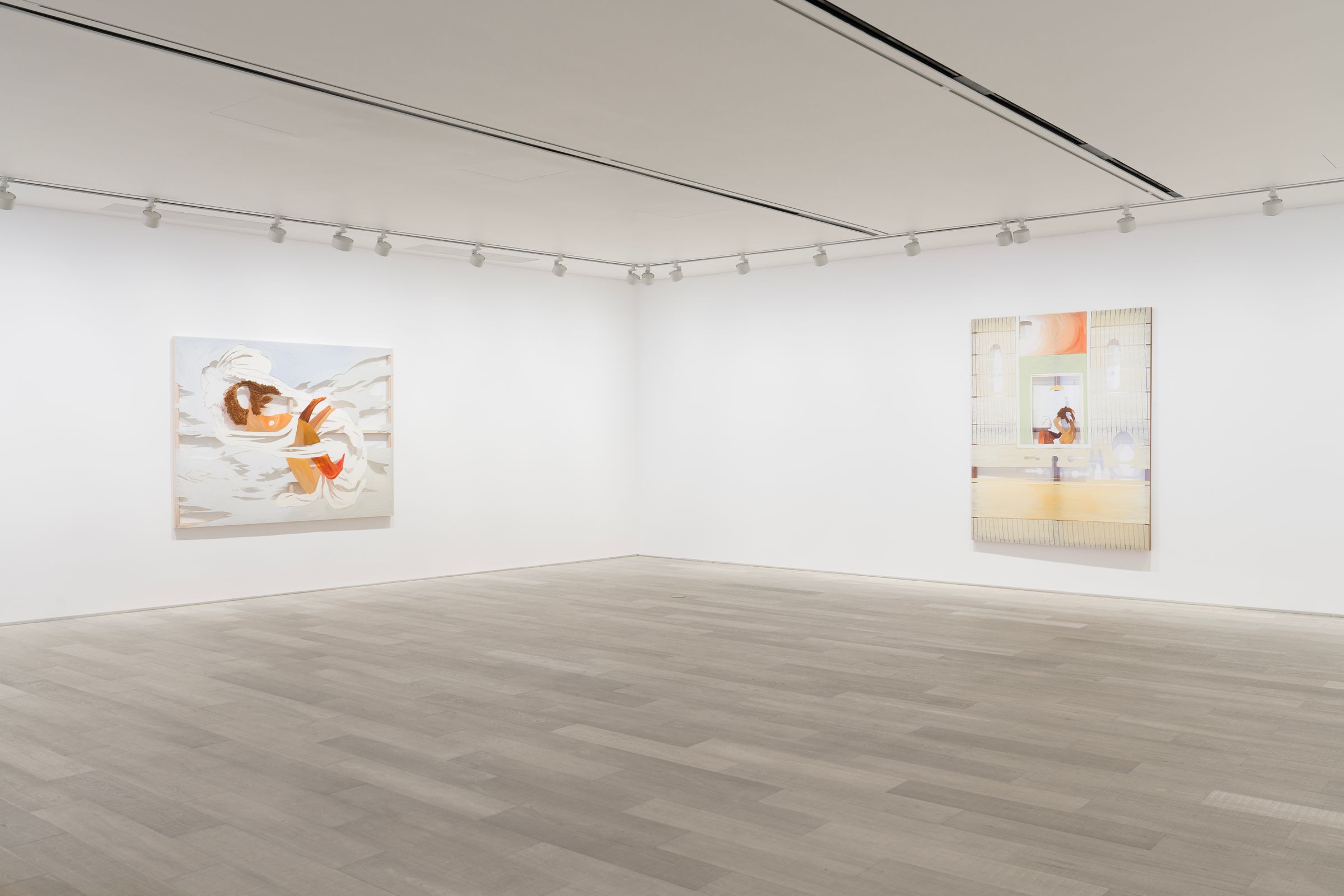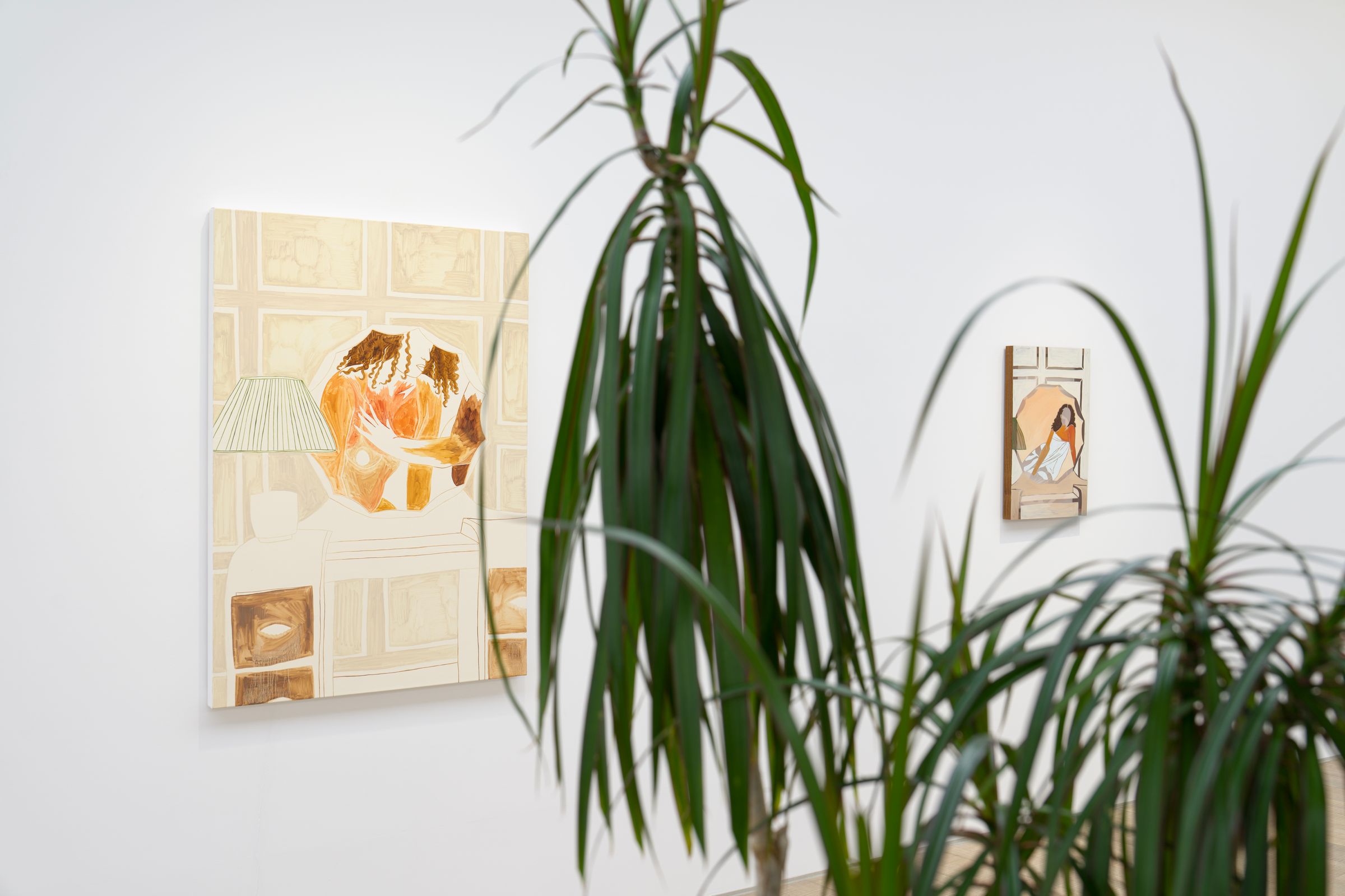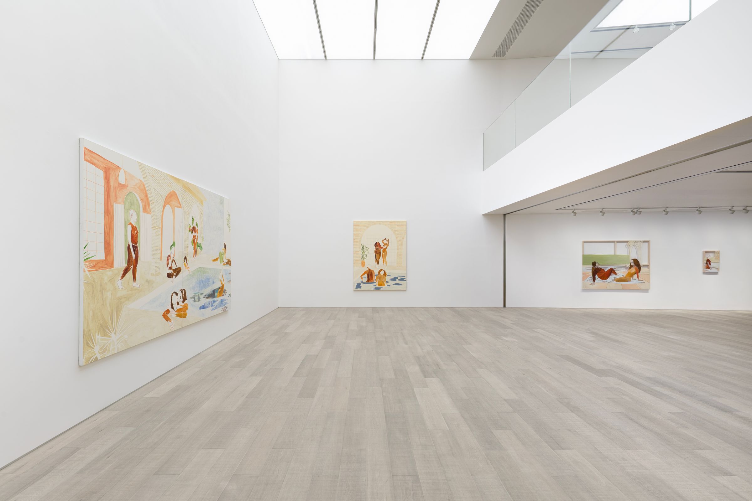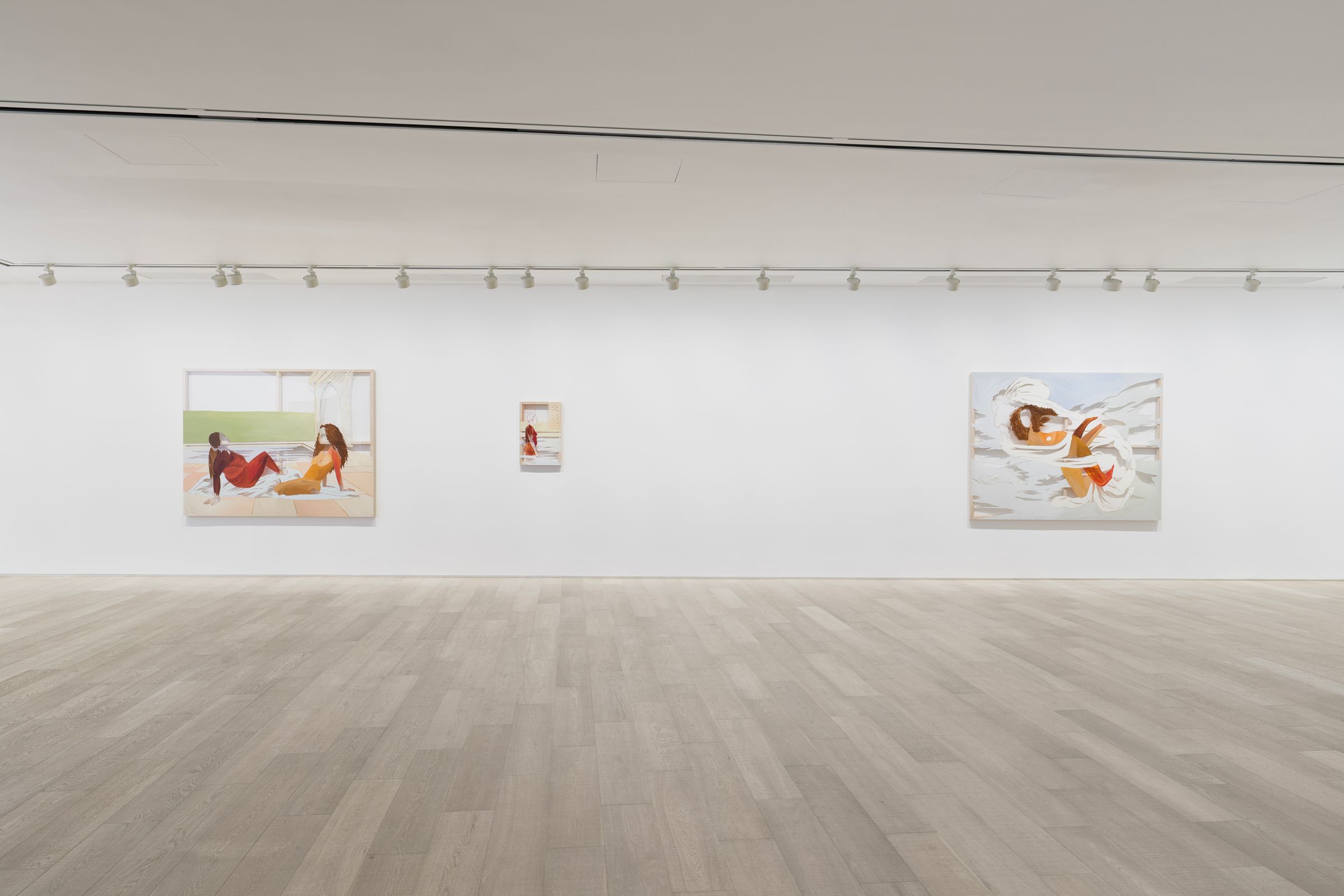 This exhibition unveils new works centered on the theme of bodies of water, weaving together a rich tapestry of narrative and formal references that have profoundly influenced her, including films by Barry Jenkins and Céline Sciamma, literature by K. Patrick and Julia Armfield, and music by Janelle Monáe. Water, as it is explored in her work, is a site of deconstruction and liberation—a place beyond fixed boundaries or the binary order—where identity and sense are deconstructed and reconstructed, a space of transformation and rebirth. Her paintings depict a world where figures and spaces flow together, interacting beyond existing norms and perspectives. Especially in these new works, she delicately illustrates the processes of self-awareness and emotional connection with others through water as a medium, celebrating the beauty and potential of liberated beings and inclusive communities. Her figures are resting in swimming pools or leaning on one another—moments where openness and vulnerability coexist. The waterside serves as a stage where women, freed from social oppression, encounter their inner selves and explore their identities. Forrester’s paintings unfold a world imbued with warmth, inclusion, joy, and freedom, where her subjects dwell sacredly in their everyday existence and desire. In doing so, she blurs fixed boundaries and invites viewers into a deeper emotional realm.
