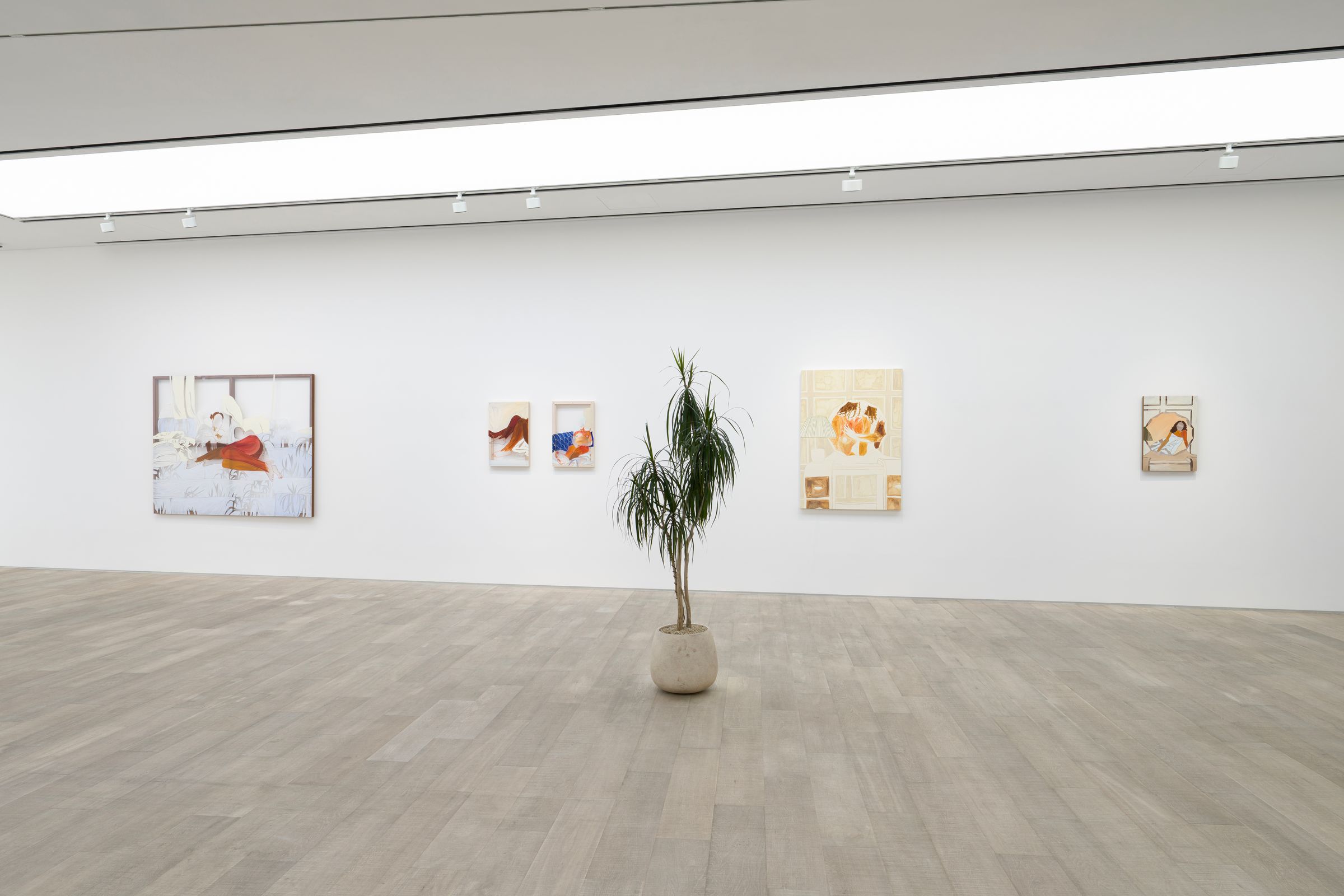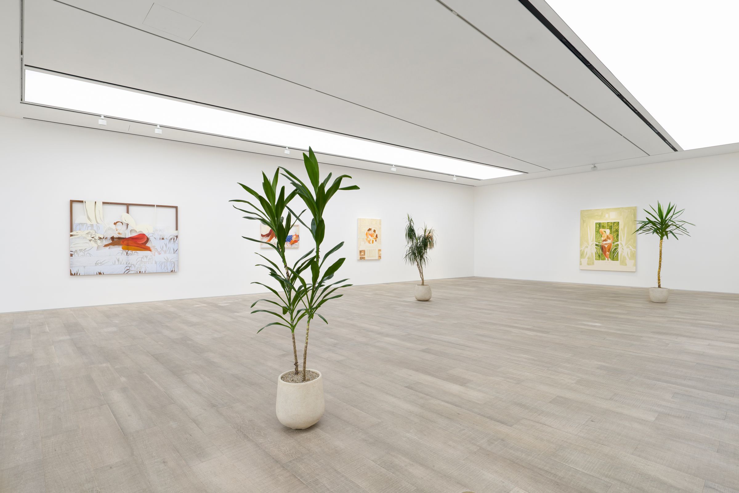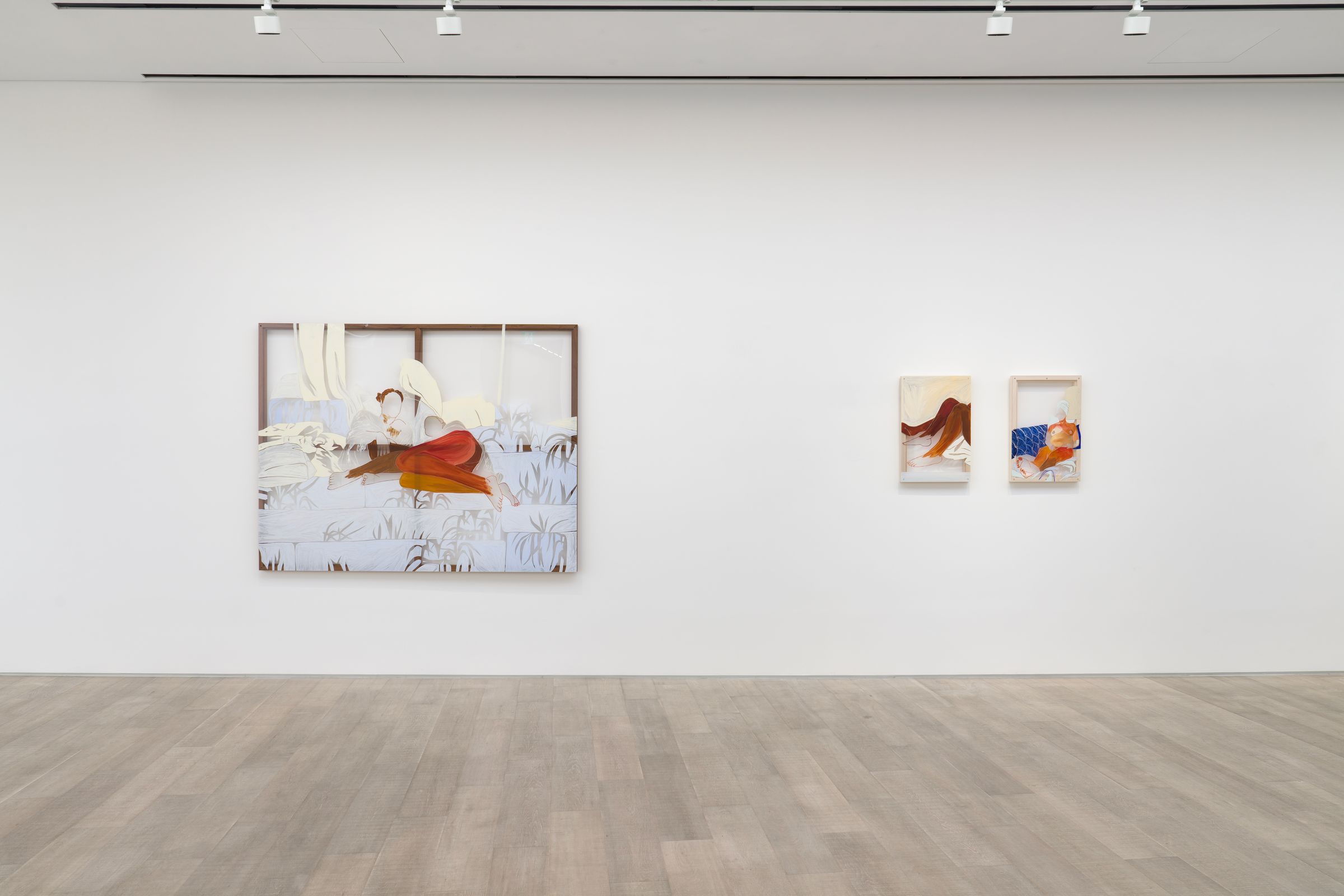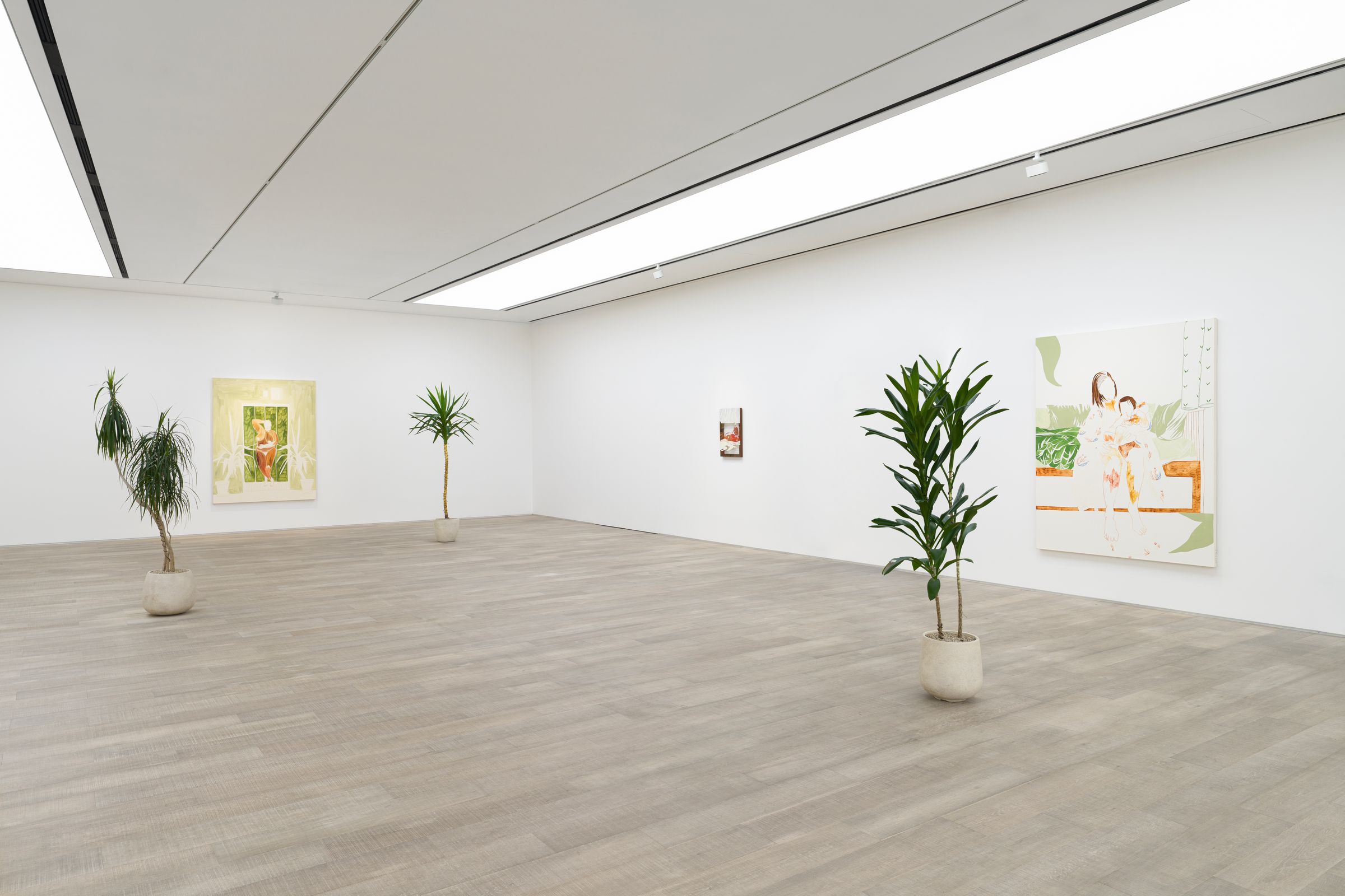 This exhibition unveils new works centered on the theme of bodies of water, weaving together a rich tapestry of narrative and formal references that have profoundly influenced her, including films by Barry Jenkins and Céline Sciamma, literature by K. Patrick and Julia Armfield, and music by Janelle Monáe. Water, as it is explored in her work, is a site of deconstruction and liberation—a place beyond fixed boundaries or the binary order—where identity and sense are deconstructed and reconstructed, a space of transformation and rebirth. Her paintings depict a world where figures and spaces flow together, interacting beyond existing norms and perspectives. Especially in these new works, she delicately illustrates the processes of self-awareness and emotional connection with others through water as a medium, celebrating the beauty and potential of liberated beings and inclusive communities. Her figures are resting in swimming pools or leaning on one another—moments where openness and vulnerability coexist. The waterside serves as a stage where women, freed from social oppression, encounter their inner selves and explore their identities. Forrester’s paintings unfold a world imbued with warmth, inclusion, joy, and freedom, where her subjects dwell sacredly in their everyday existence and desire. In doing so, she blurs fixed boundaries and invites viewers into a deeper emotional realm.