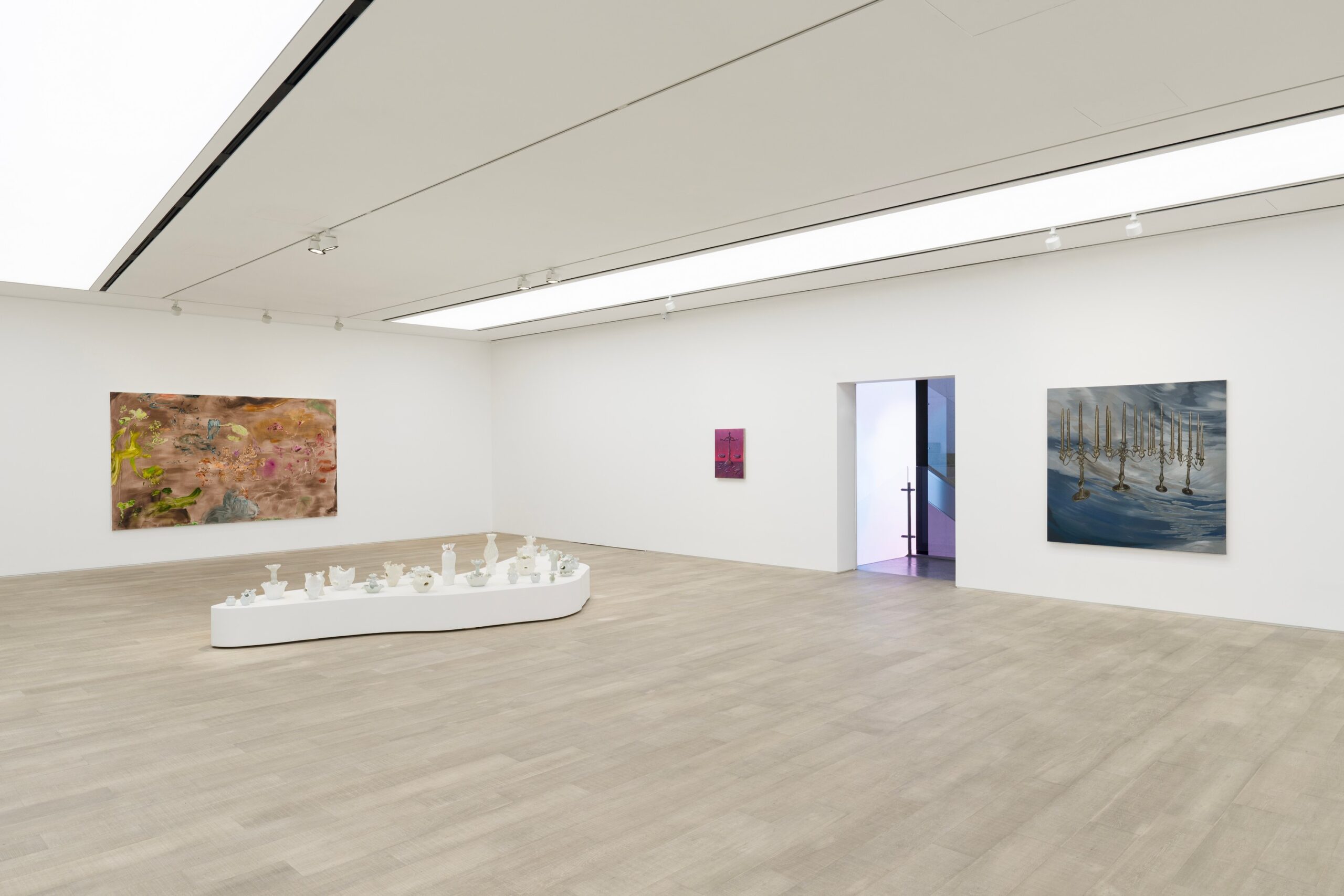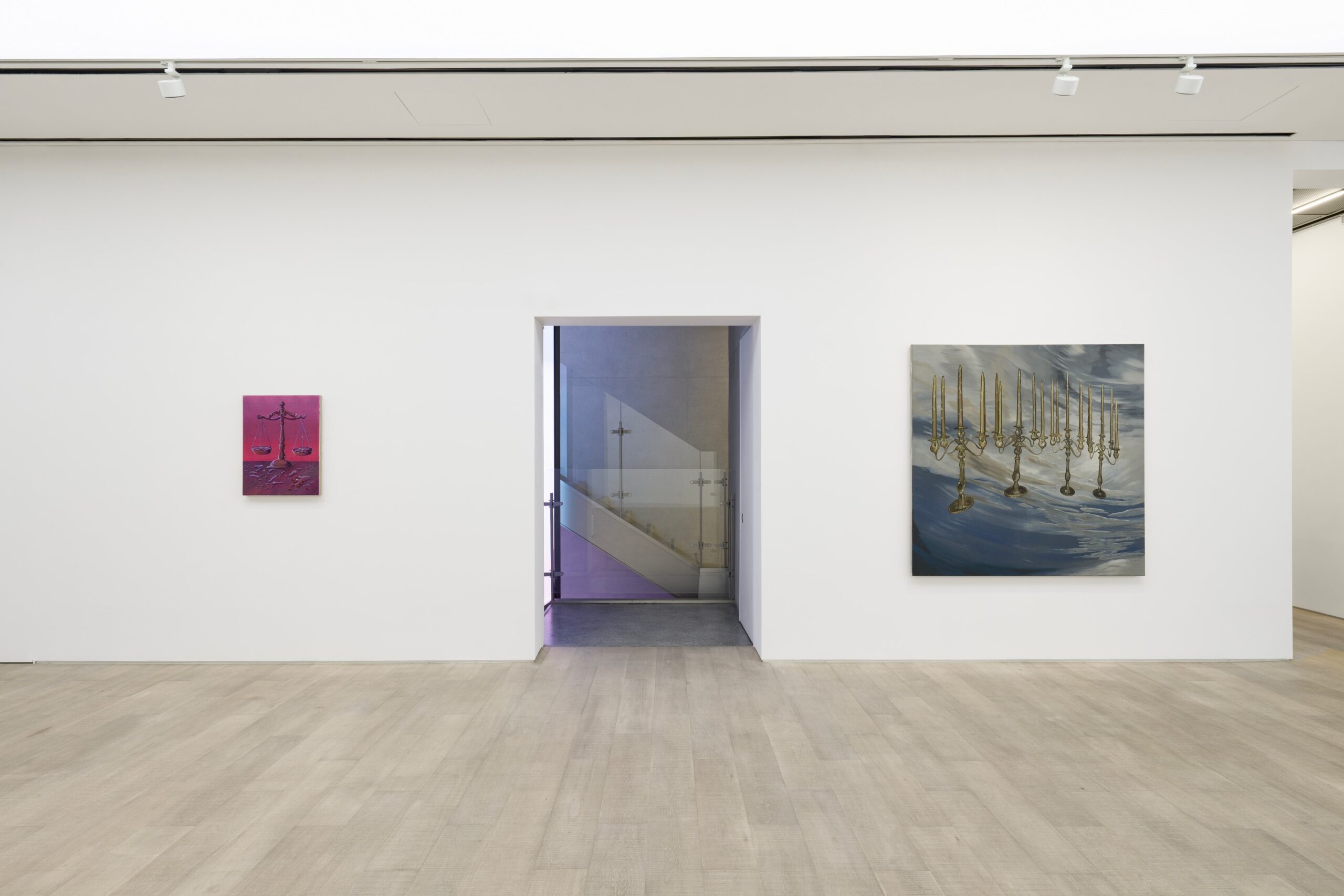 Rae Klein’s chandeliers and candelabra introduce a charged tension in which domestic ornament seems almost animate, oscillating between protection and threat. Light functions both as signal and sentinel, evoking devotional presence and the mysticism of the séance spirituelle–a desire to reach beyond reason and seek guidance from unseen forces. These works linger in transitional emotional states, capturing the fragile threshold between safety and fear, dream and waking life, ultimately reflecting on the fleeting, precarious nature of existence.