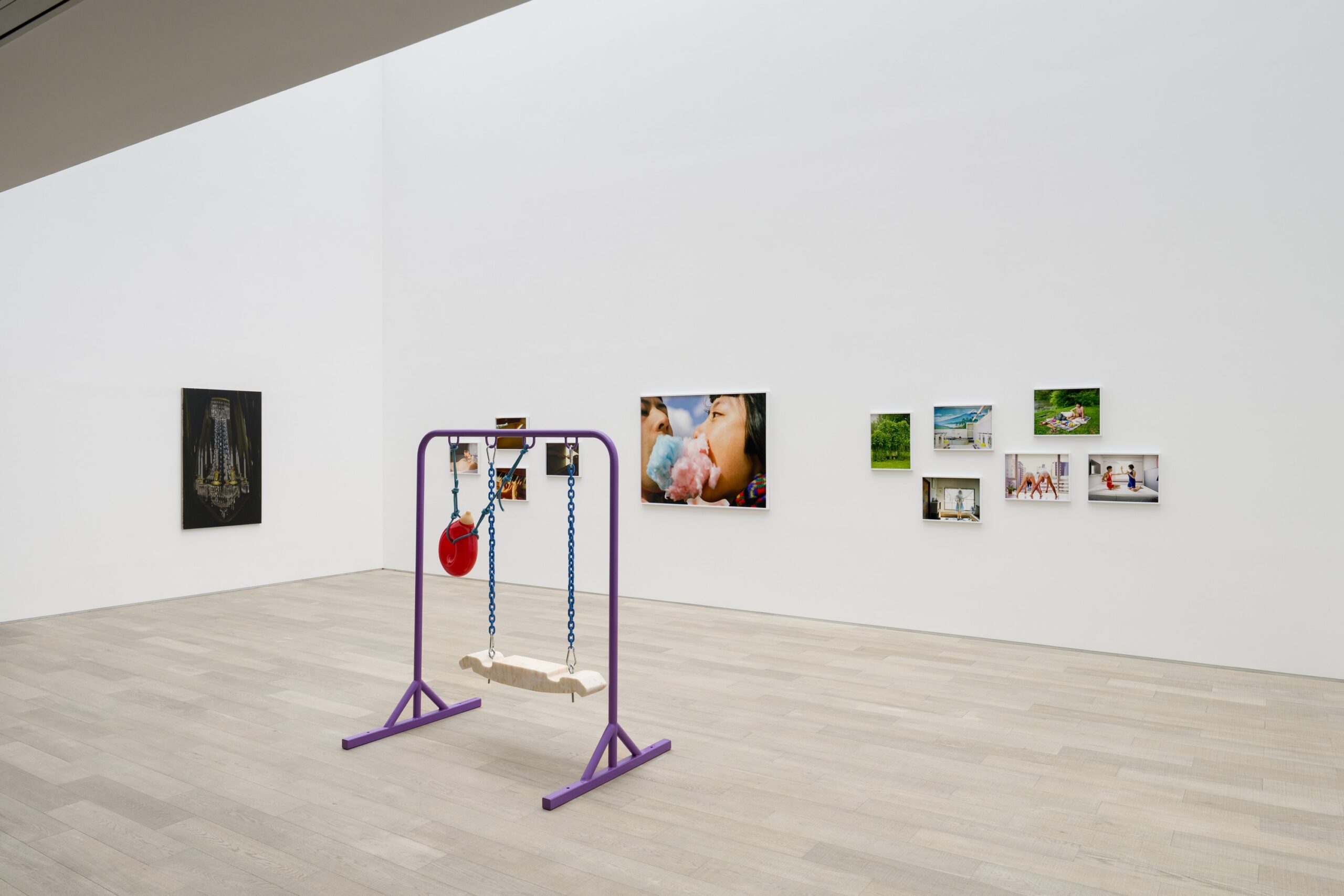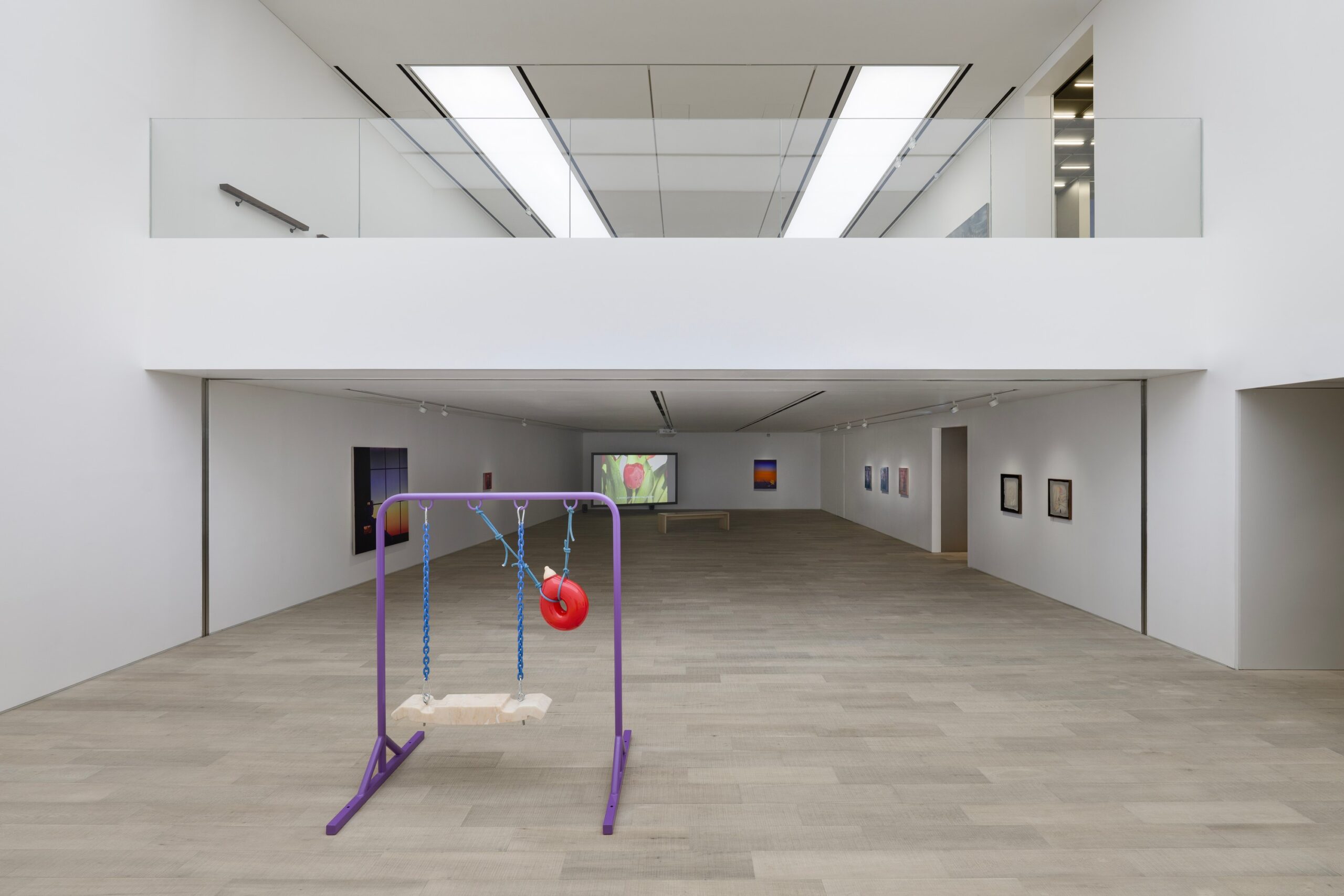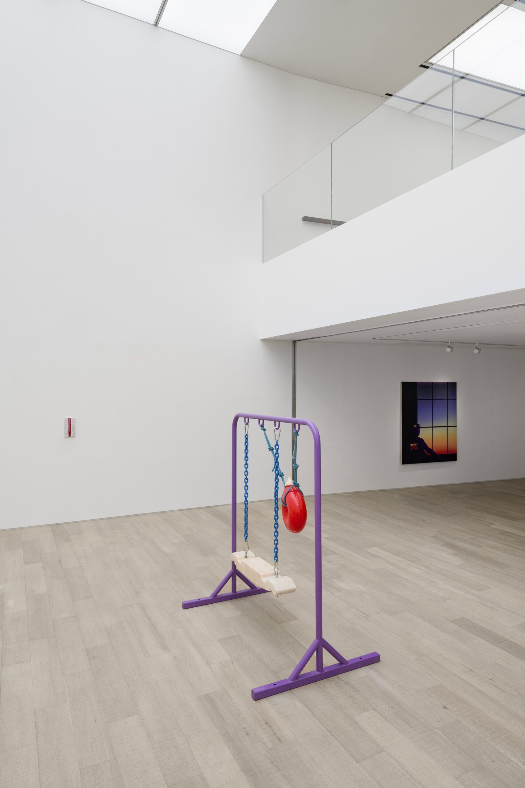 네빈 마무드의 조각 Swing Set은 익숙한 놀이터 구조물을 관능적인 혼성 형태로 변주하며 기억과 욕망 사이를 부유한다. 대리석과 유리의 매끈한 표면은 정제된 기하학적 형태에 신체적 연상을 불어넣으며 순수성과 에로티시즘의 경계를 흐린다. 웃음 가득했던 어린 시절의 자유로운 순간을 떠올리게 하는 마무드의 작품은 기존의 형태와 의미를 전복하며 성인의 관계에서 비롯되는 즐거움을 소환하는 동시에 우리 안의 ‘내면 아이’를 다시 환기 시킨다.